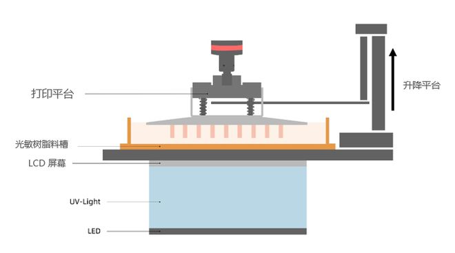 LCD打印技術,最簡單的理解,就是DLP技術的光源用LCD來代替。我們可以回顧光固化技術的特點,每一個光固化技術的核心都是圍繞光源問題的解決方案,從激光掃描的SLA,到數(shù)字投影的DLP,再到最新的LCD打印技術。LCD技術分為兩種,兩種還不一樣。其分界線就是光源波長,一個是405nm紫外,一個是400-600nm可見光。LCD掩膜光固化:用405nm紫外光(和DLP一樣),加上LCD面板作為選擇性透光的技術,是LCD掩膜技術(LCD masking)或者行業(yè)里有很多各自的名字,例如選擇數(shù)字光處理(mDLP),液晶DLP技術,紫外掩膜固化等等。